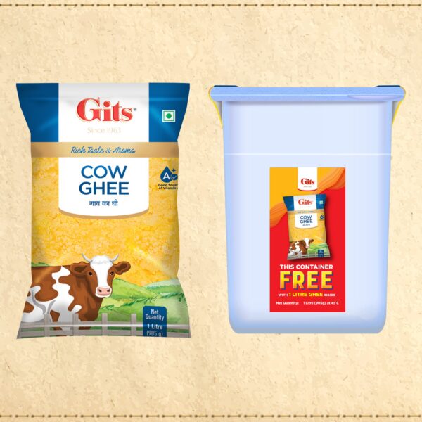 Experience the unparalleled taste of Gits Cow Ghee – Made through the age-old process of churning, it tastes like homemade ghee. Grainy in texture, Gits cow ghee is known for its rich aroma and authentic taste. Nutrient-packed and preservative-free, this ghee will enhance the flavor of all your dishes.