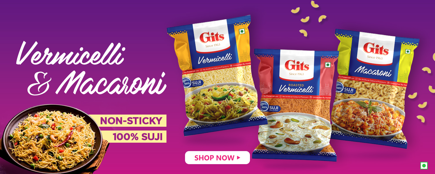 Gits Roasted Vermicelli is a flavourful addition to your kitchen pantry. Made with 100% suji, this vermicelli is expertly roasted to perfection, resulting in a delightful golden color and a rich, nutty taste. It is non-sticky and a healthy alternative for relishing sweet dishes.